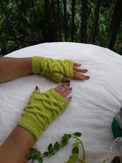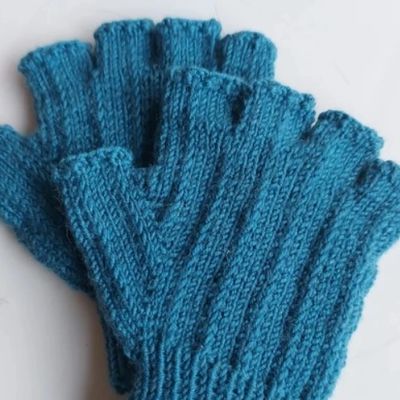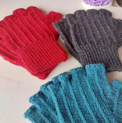 A luva é feita para vestir perfeitamente na mão, com aumentos para o dedão e depois separação e tricotado cada dedo individualmente.