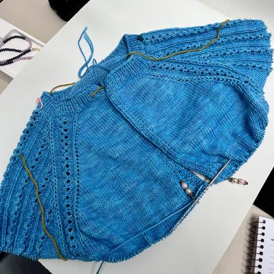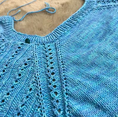 Início da peça, construção da pala, divisão das mangas, aumentos do corpo e barra com arremate.