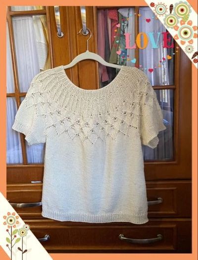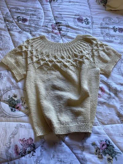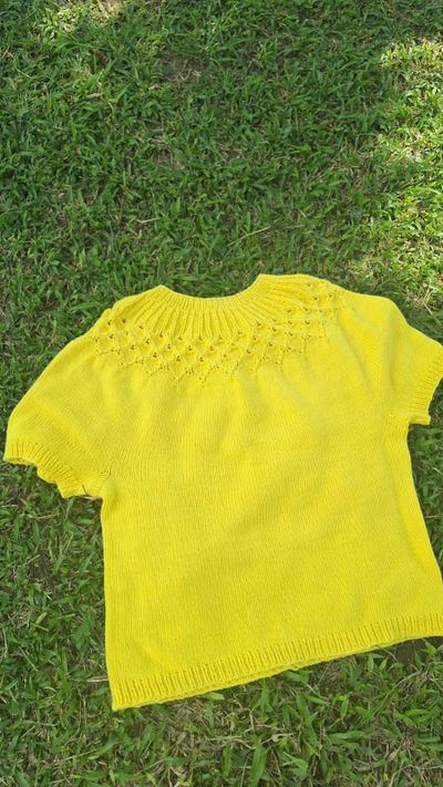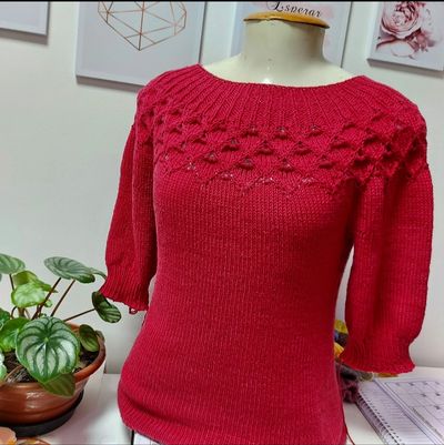 🧶A Blusa Swing by Spring é uma peça top down, sem costura, com pala rendada e corpo ajustado com movimento.
